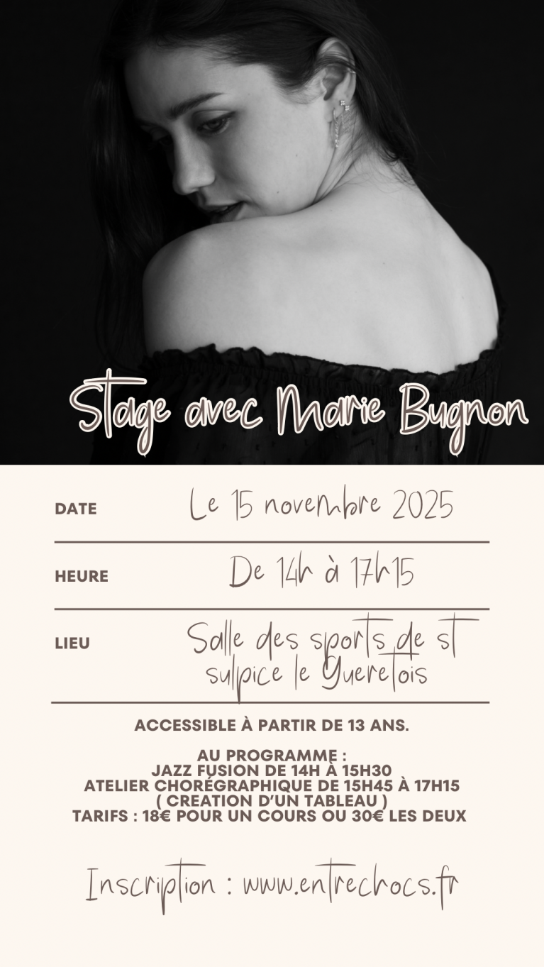 Notre association organise régulièrement des stages avec des intervenants extérieurs et un gala de fin d'année tous les deux ans à L'Espace André Lejeune de Guéret. L'association Entre'Chocs a également créé une Compagnie.